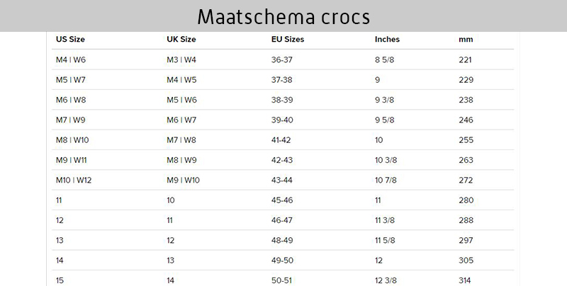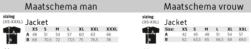 Kies uw maat volgens onderstaande maattabellen voor een jacket en crocs.