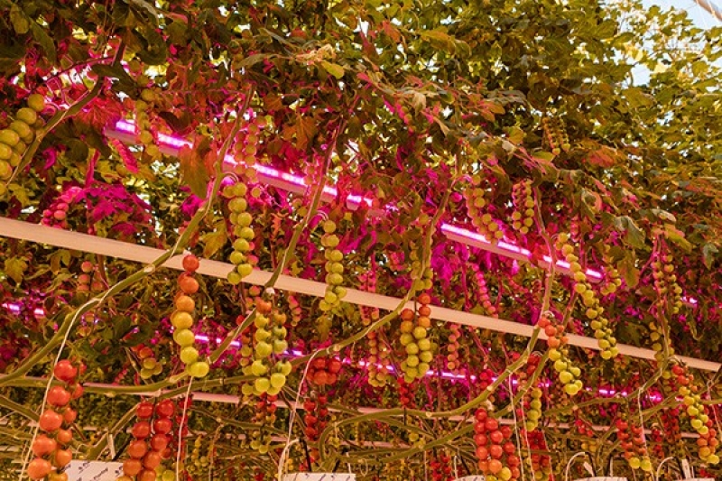 De kassen van het De Ruiter Experience Center zijn hypermodern, met de modernste systemen van Priva, slimme CO2-oplossingen en een geavanceerd belichtingssysteem met Son-T. Onlangs installeerde Phillips op drie paden LED-verlichting tussen het gewas, onder de Son-T lampen. Zo produceert De Ruiter hele specifieke productiegegevens, onder vergelijkbare omstandigheden, met en zonder LED.