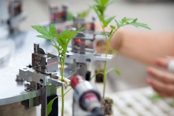 De techniek staat voor niets, ook voor onderstammen. Sinds 2007 is het mogelijk om jonge tomaten- en aubergineplanten automatisch te enten.