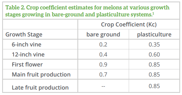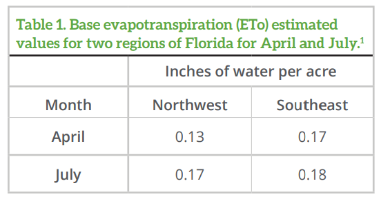 2 Zotarelli, L., Dukes, M., Liu, G., Simonne, E., and Agehara, S. 2018. Principles and practices of irrigation management for vegetables. 2018 Vegetable Production Handbook. UF-IFAS.