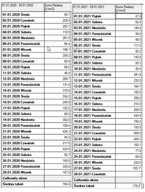 Poniżej dane dotyczące radiacji w roku 2020 i 2021 w rejonie Karczewa.