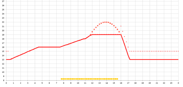Przykładowe ustawienie temperatur dla dorosłych roślin.