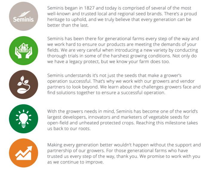 Bettering every generation of seed to better each generation of the farm is at the heart of our company. For more than 150 years, Seminis has been bringing high quality seed to farmers, and we continue to push to be better. This is not possible without our grower and vendor partners who are with us every step of the way.