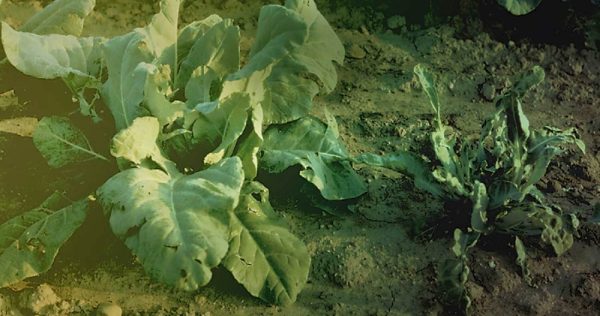 Molybdenum – Causes whiptail and blindness (no apical growing point) of broccoli and cauliflower. Leaves are extremely malformed, being narrow with curled, ruffled edges. Curd development is poor.